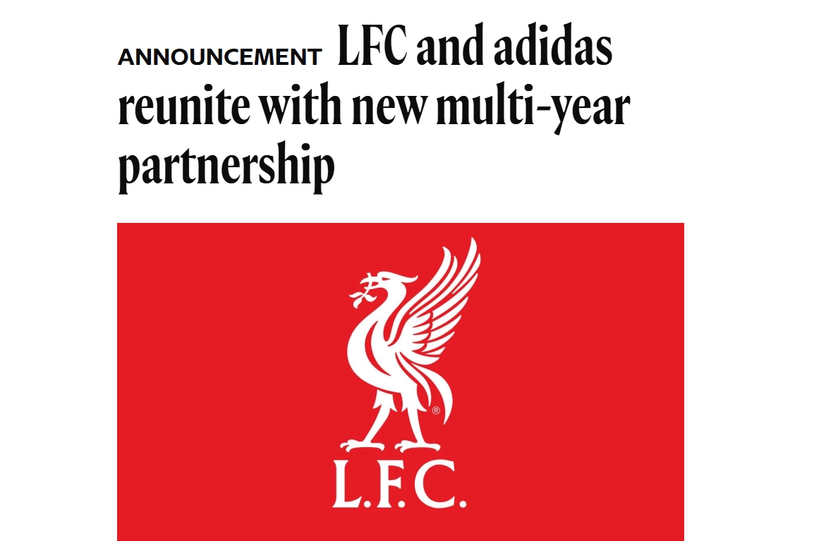 03月10日訊 官方消息,利物浦與阿迪達斯時隔13年再度攜手,后者成為俱樂部的官方球衣贊助商。利物浦就此結束了與耐克的五年合作期。