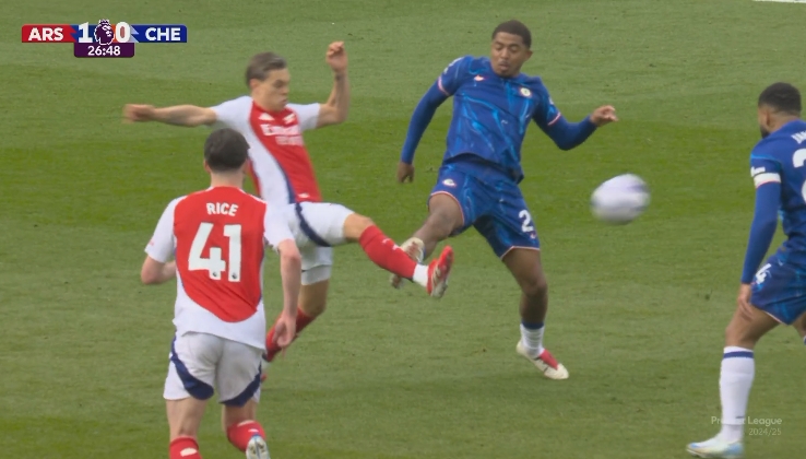 03月16日訊 英超第29輪,阿森納vs切爾西,比賽第28分鐘,韋斯利-福法納在爭搶中一腳蹬到特羅薩德的小腿,裁判判罰犯規(guī),但沒有出牌。